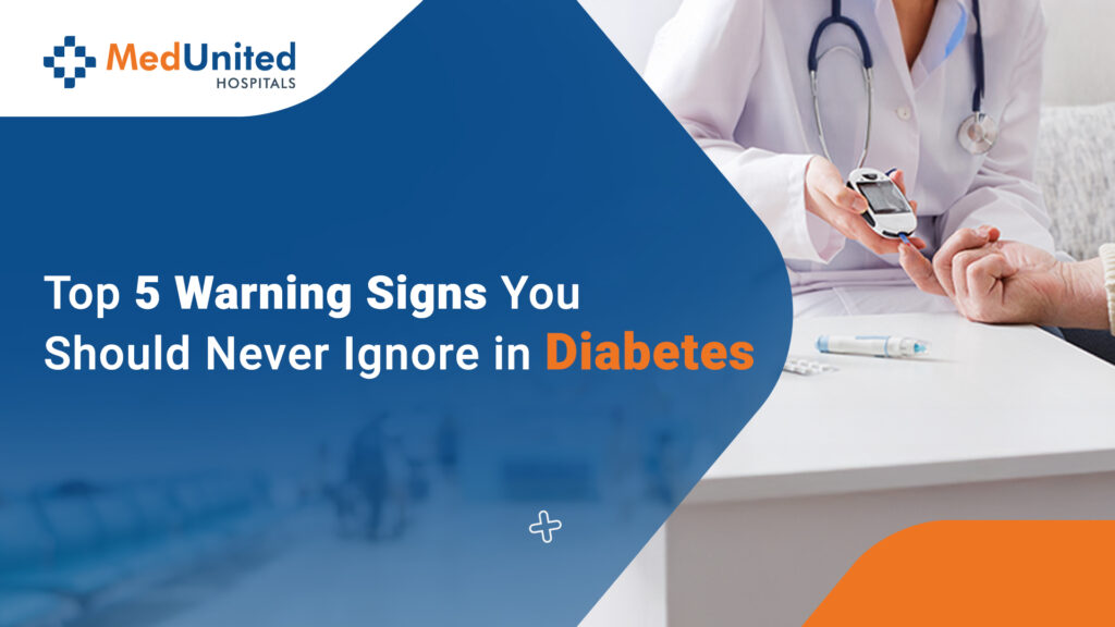 Diabetes is often called a silent condition — it develops gradually, showing subtle symptoms that many people tend to ignore. However, early detection and proper management can prevent serious complications like nerve damage, kidney failure, or vision loss.  At MedUnited Hospitals, recognized as the best diabetes care hospital in Palakollu, our experts believe awareness is the first step to prevention. Let’s look at the five warning signs of diabetes that should never be overlooked.  Frequent Urination and Excessive Thirst  Are you constantly feeling thirsty or visiting the restroom more than usual? When blood sugar levels rise, the kidneys work harder to remove excess glucose, leading to dehydration and frequent urination.  If this continues for several days, it’s time to get your sugar levels checked by the best endocrinologist in Palakollu at MedUnited Hospitals. Early evaluation helps prevent dehydration and other complications.  Unexplained Weight Loss  Losing weight without changing your diet or workout routine might seem harmless, but it could be a sign of uncontrolled diabetes. When the body fails to use glucose for energy, it starts burning fat and muscle instead — leading to unexplained weight loss.  If you’ve noticed sudden weight changes, consult a diabetes specialist at the best hospital in Palakollu. Timely treatment can help you restore your energy and maintain a healthy balance.  Fatigue and Weakness  Do you feel unusually tired, even after a good night’s sleep? High blood sugar can interfere with the body’s ability to convert food into energy, causing constant tiredness and weakness.  This symptom is often ignored, but it’s one of the earliest indicators of diabetes. At MedUnited Hospitals, our specialists offer personalized diabetic care programs that include diet, medication, and lifestyle guidance — helping you feel active again.  Slow-Healing Wounds or Frequent Infections  If you’ve noticed cuts or wounds taking longer than usual to heal, or you’re getting frequent infections, it might be linked to diabetes. High glucose levels reduce circulation and weaken the immune system, slowing down the healing process.  Our endocrinology department in Palakollu offers complete diabetic wound care, infection management, and regular checkups to prevent further complications.  Blurred Vision  Fluctuating sugar levels can affect the tiny blood vessels in your eyes, leading to blurred or distorted vision. Over time, this can develop into diabetic retinopathy — a serious eye condition that may lead to vision loss.  Getting your eyes and blood sugar checked regularly at the best diabetes care hospital in Palakollu can help you detect and manage such issues before they become severe.  Takeaway  Ignoring early symptoms of diabetes can lead to long-term health issues, but timely care can make a world of difference. Whether you’re newly diagnosed or at risk, MedUnited Hospitals provides the best endocrinology services in  Palakollu, offering holistic care for diabetes management — from diagnosis to treatment and lifestyle support.  Visit our expert team at MedUnited Hospitals, Palakollu and take charge of your health today.