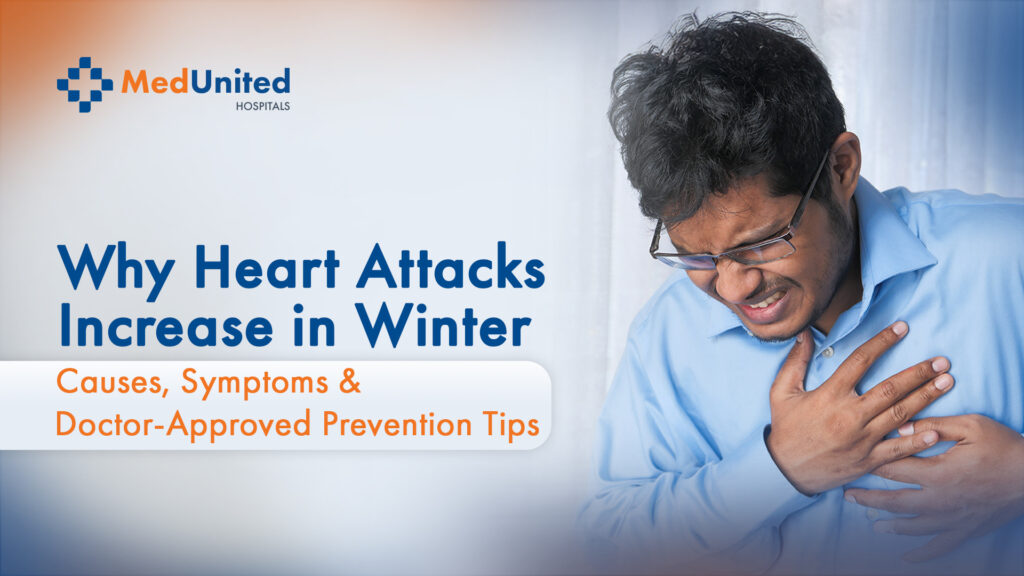 Winter is one of the most challenging seasons for heart health. Across India — including Konaseema — doctors see a sharp rise in cardiac emergencies as temperatures drop. At MedUnited Hospitals, the Best Multi Speciality Hospital in Konaseema, our cardiology experts are committed to creating awareness that can save lives.  This blog explains why heart attacks increase in winter, early symptoms to watch for, prevention tips approved by specialists, and how the Top Cardio Experts in Konaseema at MedUnited can help you stay safe.  Why Heart Attacks Increase in Winter Cold Weather Constricts Blood Vessels When the temperature drops, your blood vessels tighten to conserve heat. This raises blood pressure and forces the heart to pump harder. People with pre-existing hypertension, diabetes, obesity, and cholesterol issues are at particularly high risk. Higher Blood Clotting Tendencies Winter reduces hydration levels, making blood slightly thicker. This increases the chances of clot formation, which can block arteries and trigger a heart attack. Reduced Physical Activity Cold mornings often lead to reduced workout routines, fewer walks, and overall inactivity. Low activity increases cholesterol levels, weight gain, and stress on the heart. Increased Infection Load Seasonal flu and respiratory infections are more common during winter. These infections add stress on the heart, especially for patients with existing cardiac or lung conditions. Winter Eating Habits Heavier meals, spicy and fried snacks, sugary winter delicacies, and increased alcohol intake silently increase heart strain.  Common Symptoms of a Heart Attack During Winter  Recognizing symptoms early can save a life. Seek immediate medical help if any of these signs appear:  In winter, people often mistake these for acidity, weakness, or cold-related discomfort — delaying treatment. Early action is crucial.  Doctor-Approved Winter Heart-Care Tips  Our senior cardiologists — recognized among the Top Cardio Experts in Konaseema — recommend these simple but powerful preventive habits: Keep Your Body Warm Layer your clothing, cover your ears and feet, and avoid early morning exposure. Stay Active Choose indoor workouts like stretching, yoga, aerobics, or a brisk walk inside your home. Follow a Heart-Healthy Diet Prefer warm soups, vegetables, fruits, nuts, and low-oil meals. Avoid carbohydrates late at night and fatty snacks. Track Your Numbers Monitor blood pressure, blood sugar, and cholesterol regularly — especially if you’re above 40. Stay Hydrated Even in winter, drink enough water. Proper hydration prevents blood thickening. Avoid Sudden Intense Activity in Cold Heavy lifting, running, or sudden exertion during cold hours increases the risk of heart strain. Do Not Ignore Symptoms Even mild chest discomfort, jaw pain, or breathlessness requires immediate evaluation at a hospital.  Why Choose MedUnited Hospitals for Winter Heart Care?  MedUnited Hospitals is regarded as one of the Best Multi Speciality Hospitals in Konaseema, trusted for advanced heart care, emergency services, and expert cardiologists.  Why patients choose us:  If you’re searching for the Top Cardio Expert in Konaseema, Best Cardiologist in Amalapuram, or Heart Specialist in Palakollu, MedUnited Hospitals offers complete, reliable care under one roof.  View our top doctors here: medunited.in/list-top-doctors-amalapuram-palakollu/  Final Takeaway  Winter heart attacks are preventable. With awareness, timely check-ups, and healthy habits, you can significantly reduce your risk. This winter 2025, stay warm, stay active, and prioritise your heart health.  At MedUnited Hospitals, your safety is our responsibility — today, tomorrow, and always.